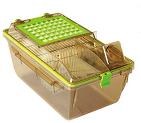 8.籠盒底部設(shè)計(jì)為大圓角,方便傾倒和清洗?;\盒底部為磨砂亞光,減少籠盒上下之間相互干擾。